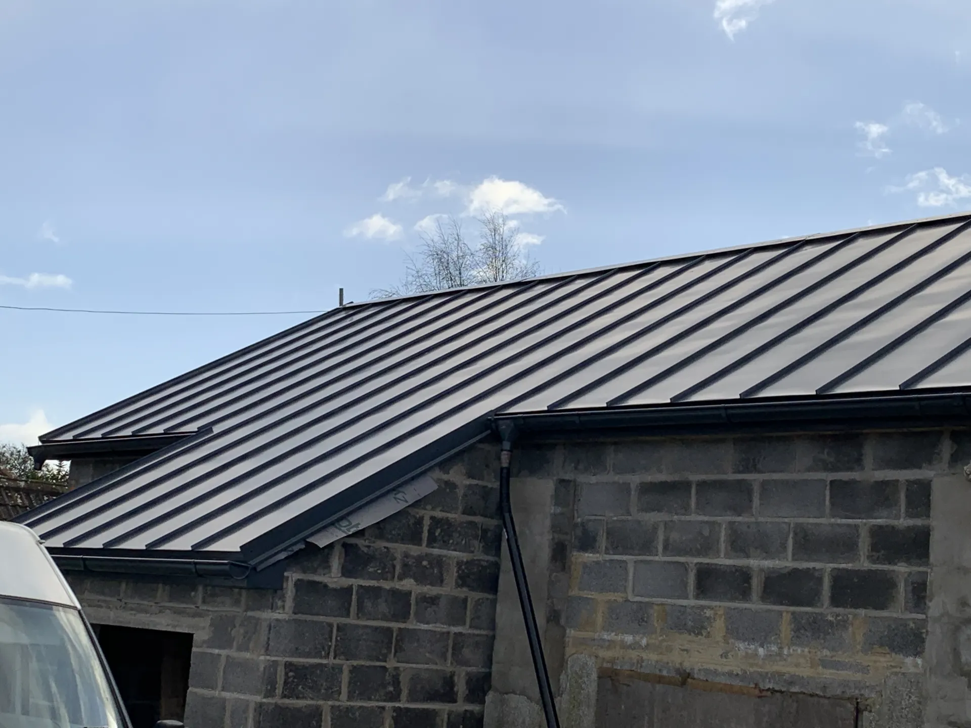 The client was after a Zinc effect roof, and decided to use our Easy Fit Klik Standing Seam system. We supplied our Textured Anthracite sheets in Aluminium with a matching gutter system also, that carries the same 50 year warranty. The fitter did a superb job and it resulted in the lovely clean finish you can see.