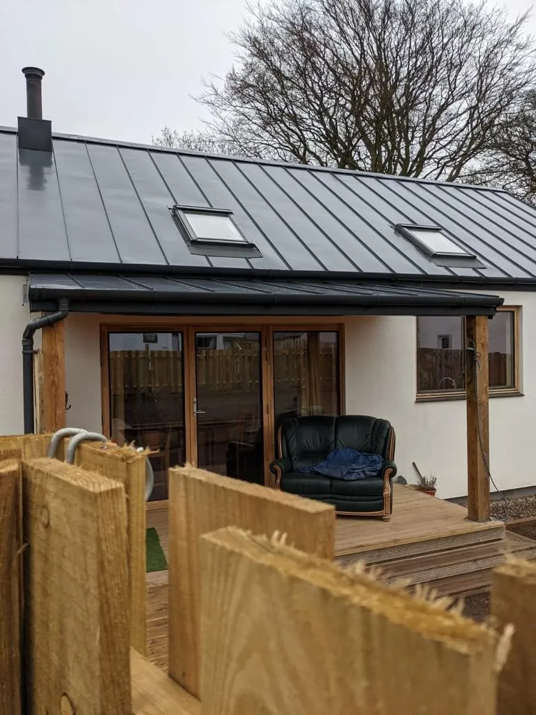The client was referred to us through United Roofing, one of our trusted Roofing Merchants. Although only a small build, we supplied our Klik standing seam system in Steel, Anthracite Grey in a matt textured finish.