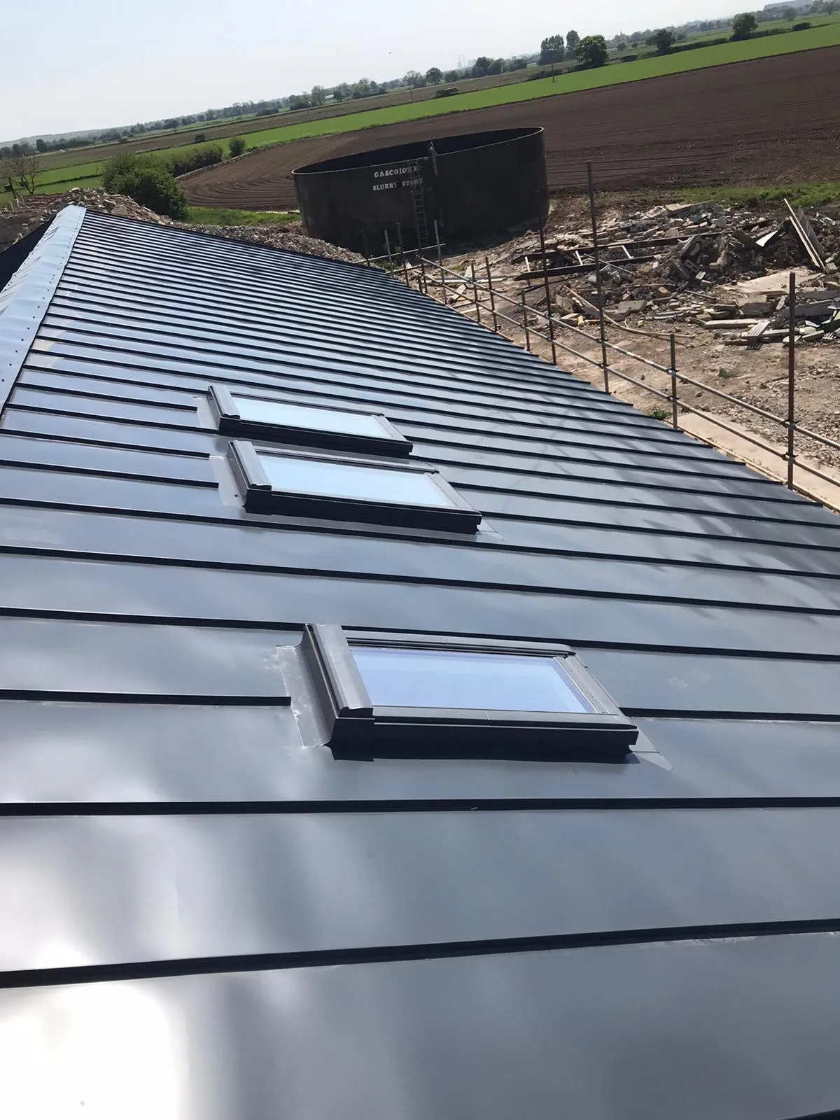 We supplied the aluminium standing seam for this barn conversion in Leicestershire, which was assembled by one of our trusted fitters who has completed the fit to a very high standard. Anthracite Grey RAL 7016 Comax Klik standing seam was used to complement this beautiful build, and it really does do it justice. With a 50 year warranty, it saved the client a fortune compared to a Zinc roof and they were over the moon with the final product.