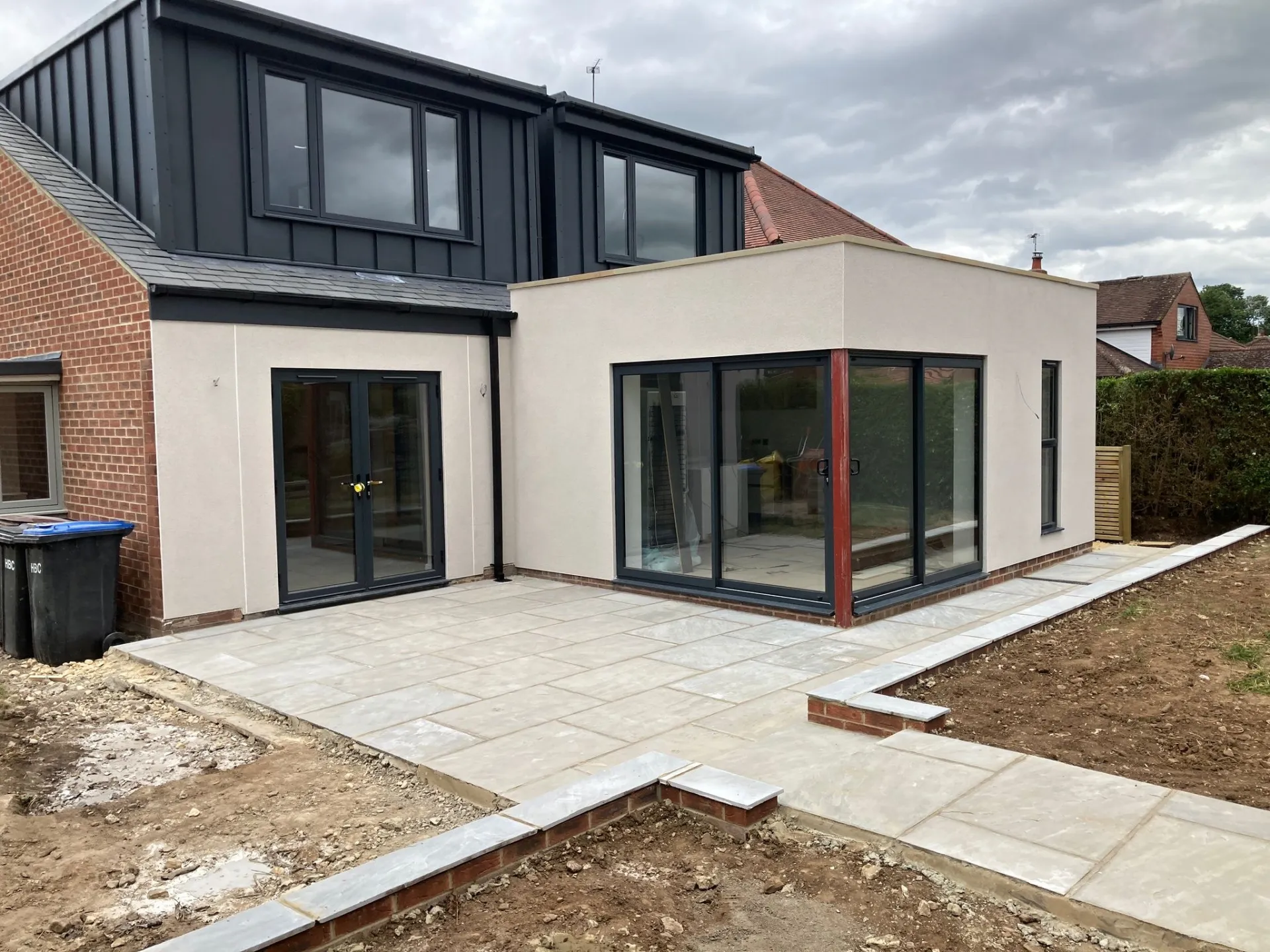 The client chose Comax Klik standing seam in Anthracite Aluminium to re-roof an existing extension and clad a new part they had just built. The fitter has finished it off perfectly and it does look stunning with the new outside area.
