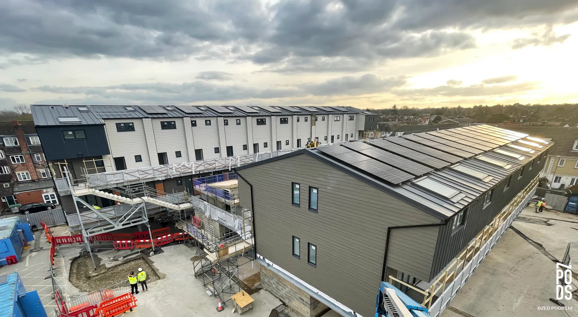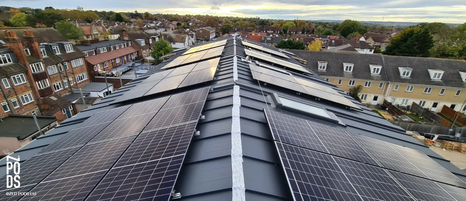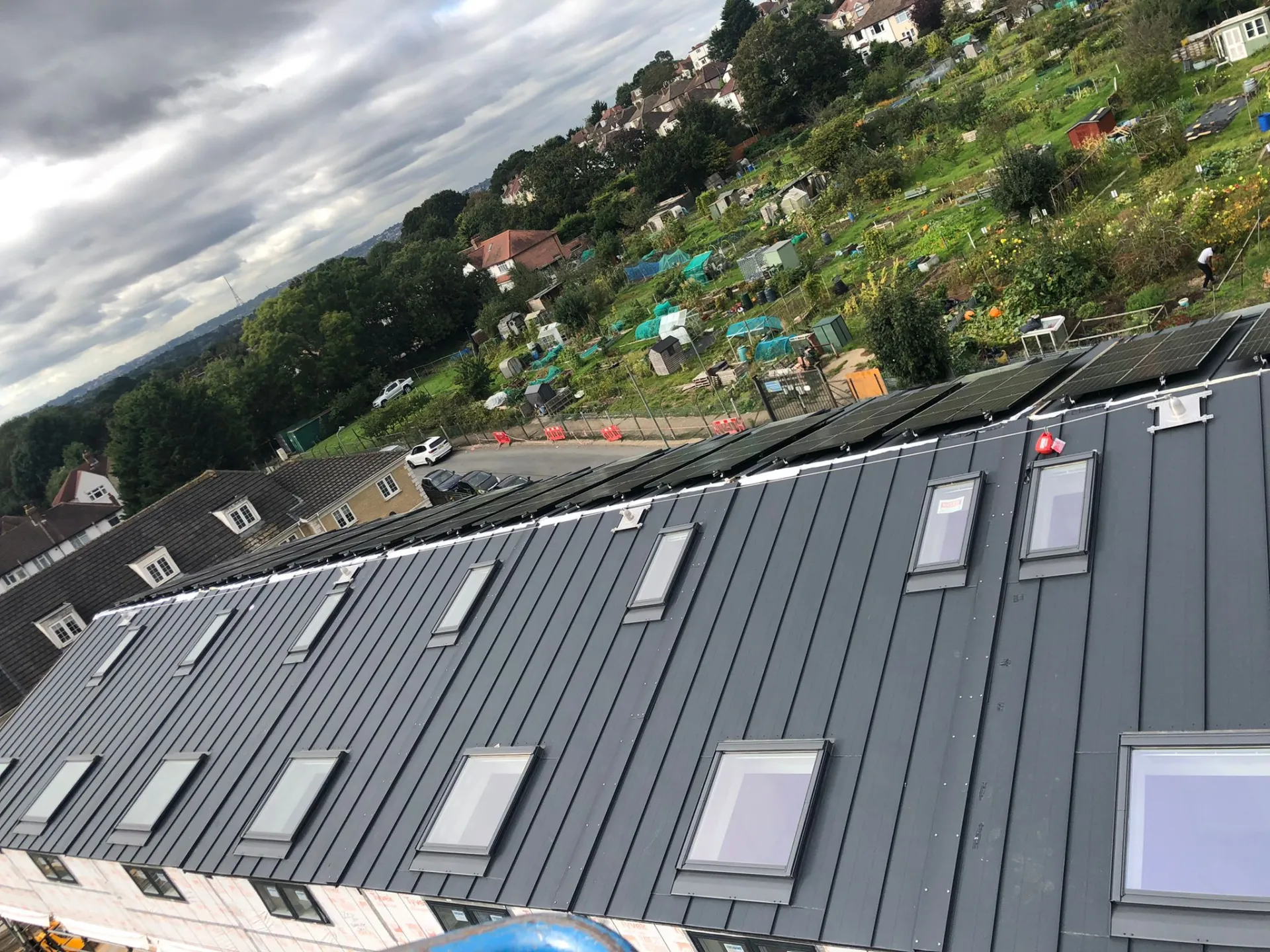 We are pleased to be a part of this collection of Award Winning 1 and 2 bed affordable flats, that were constructed in a modular factory then transported to site on a car park in Bromley. Comax KLIK Standing Seam was used across all the roofs, with the solar panels installed on site. Produced with the local borough Council, and sited on a carpark, these are a superb way of producing local affordable housing with the roofing completed in the modular factory along with the rest of the build.