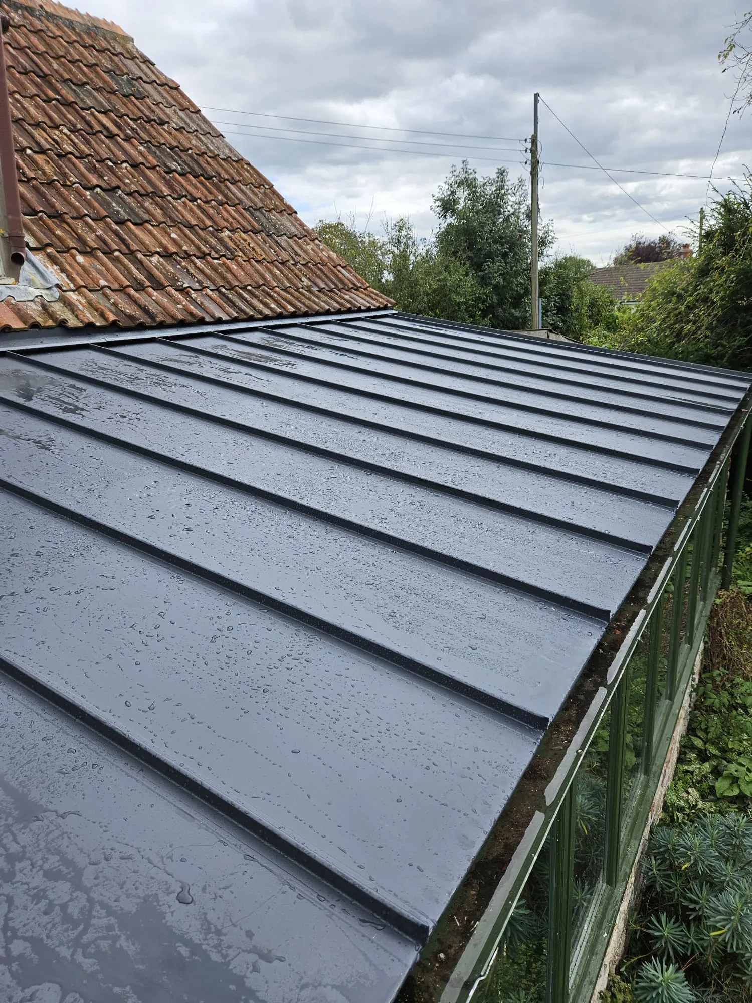 There were some canopy extensions at this lovely old property that needed covering, and the client was recommended Comax Klik Standing Seam to finish. Aluminium Klik in RAL 7016 Anthracite was fitted beautifully with all abutment flashings supplied as standard.